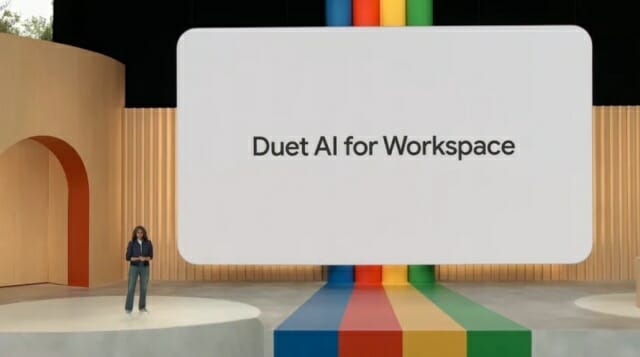 구글은 구글 독스, 구글 시트, 구글 슬라이드, 구글 미트, 지메일에 제공하는 AI 도구 제품군의 이름을 ‘듀엣 AI’ (Duet AI)로 발표했다. 듀엣 AI를 사용하면 이메일을 작성하거나 슬라이드 텍스트에서 이미지를 생성하는 등의 작업을 수행할 수 있도록 지원한다. 현재 듀엣AI는 대기자 명단에 등록해야 이용할 수 있다.