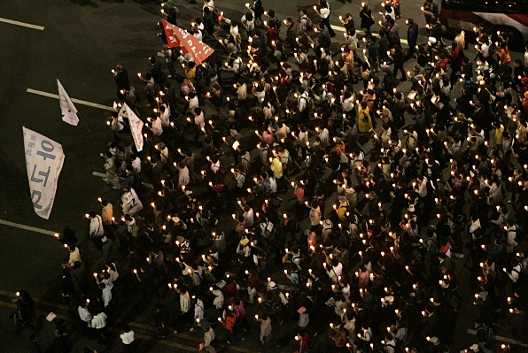 ▲ 2008년 촛불집회 당시 다음 아고라 누리꾼들이 행진하고 있다.