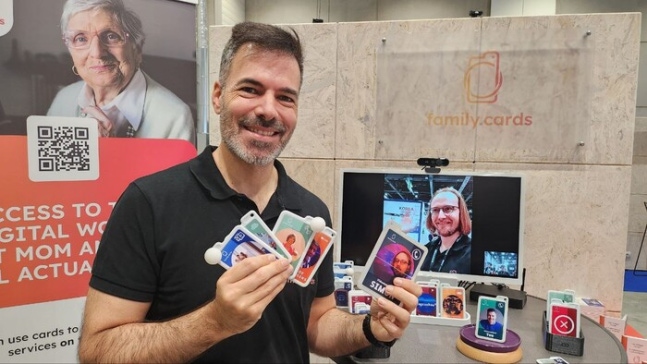 테오 오르테가 공동대표는 텔레비전과 단말기, 카드만을 가지고 화상통화와 클라우드 서비스를 이용할 수 있는 서비스를 시연했다. 작동법은 직관적이었다. 신용카드 크기의 화상통화 기능을 탑재한 카드를 텔레비전 앞 단말기에 터치하니 영상통화 창이 열렸다. 병원 그림 카드를 바꿔 대니 이번에는 의사가 등장했다. 뉴스라고 쓰인 카드를 터치하니 최신 방송 뉴스 화면이 텔레비전에 떴다. 떨어져 사는 가족들이 클라우드 폴더에 손주 사진 등을 저장하면 텔레비전을 통해 사진을 볼 수 있는 클라우드 서비스도 구현된다. 오르테가 대표는 “알츠하이머를 앓는 가족을 위해 패밀리카드 개발을 시작했다. 정신적 장애가 있어도 쉽게 사용할 수 있는 기계를 만드는 게 꿈이었다”고 했다.