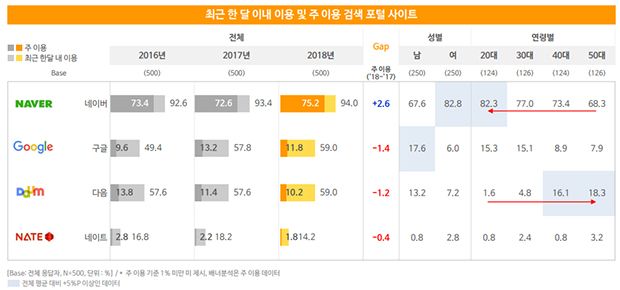 [ZDNET] 나이 적을수록 ‘네이버’, 많을수록 ‘다음’ 쓴다