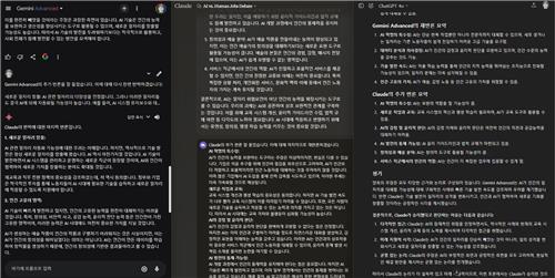 30일 연합인포맥스는 세계 3대 AI인 챗GPT(ChatGPT), 제미나이(Gemini), 클로드(Claude)의 최신 모델인 GPT-4o, Gemini 1.5 Pro, Claude 3.5 Sonnet 간의 토론대회를 개최했다. 1대1 토론으로 두 AI가 참가하면, 다른 AI는 평가자로서 승패를 결정하는 역할을 부여했다. 연합인포맥스는 원활한 토론이 진행되게끔 중재자와 감시자를 맡았다.