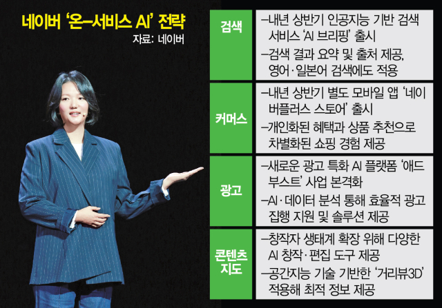 네이버가 검색·광고·콘텐츠 등 자사가 운영하는 모든 서비스에 인공지능(AI) 기술을 탑재해 사용자 경험을 강화하고 해외 진출을 통해 AI 수익화를 본격화한다. 또 국내 AI 생태계 성장 지원을 위해 1조 원 규모의 펀드를 조성한다.