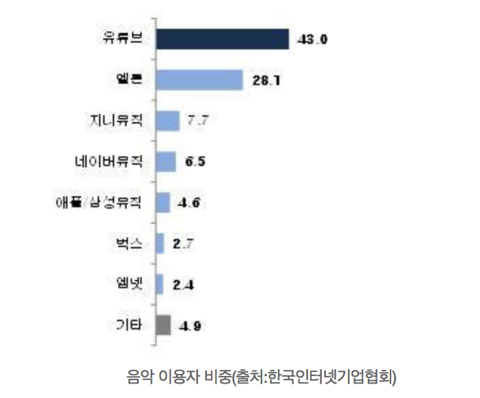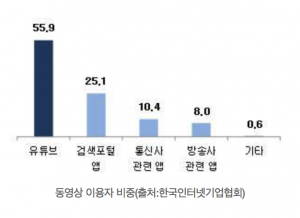 한국인터넷기업협회의 모바일 서비스 이용행태 조사보고서에 따르면 유튜브가 모바일로 동영상과 음악을 감상할 때 주로 이용하는 앱으로 나타났다.