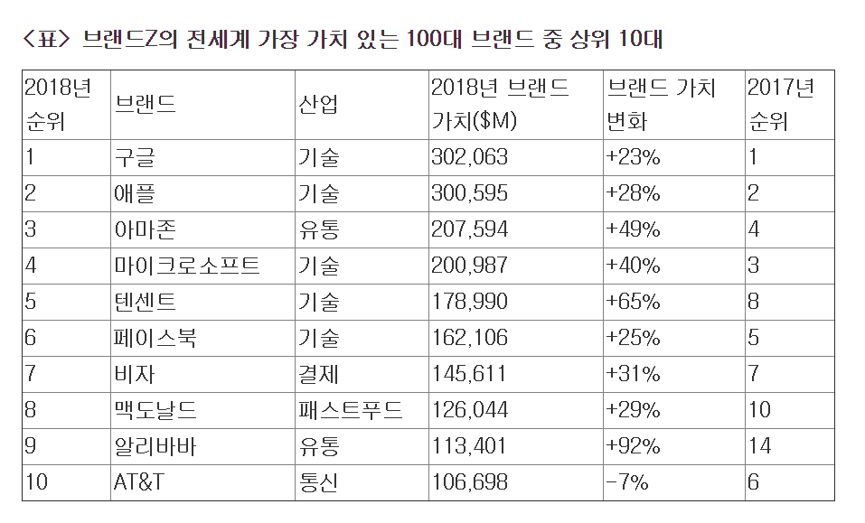 [CIO] 세계 100대 브랜드 중 1/3 이상이 ‘기술’··· 1위 구글, 2위 애플