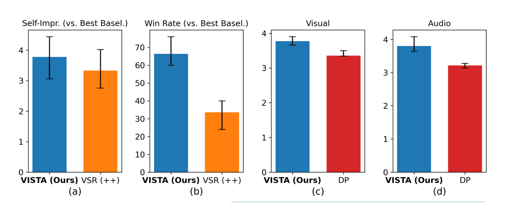 이어 VISTA는 여러 비디오와 프롬프트 쌍을 샘플링, 비교한다. 기준에는 시각적 충실도, 물리적 상식, 텍스트 비디오 정렬, 오디오 비디오 정렬, 그리고 참여도 등이 포함된다. 이를 통해 승리자 영상을 만든 프롬프트를 가려낸다.