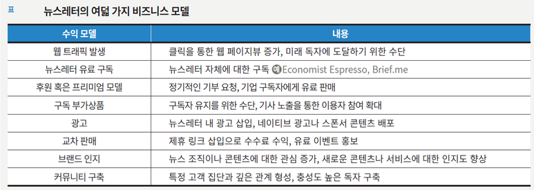 뉴스레터는 자체 구독 모델을 비롯해 다양한 비즈니스 모델이 가능하다.