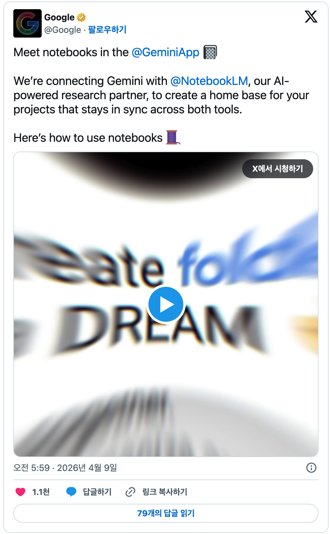 구글은 “이를 시작으로 제미나이 내 노트북 기능을 지속적으로 고도화할 계획”이라고 밝혔다.