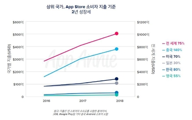 모바일 시장의 성장으로 앱 퍼블리셔의 수익 창출 기회가 더욱 늘어나고 있다. 2018년 전 세계 앱의 총 소비자 지출은 2016년 대비 75% 성장해 1010억달러(113조2109억원)를 돌파한 것으로 나타났다. 한국 시장은 2018년 기준 2016년 대비 80% 성장한 것으로 확인됐다. 중국의 경우 2018년 전 세계 총 소비자 지출의 약 40%를 차지했다.