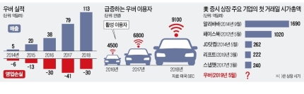 우버가 미 증권거래위원회(SEC)에 제출한 369페이지짜리 상장신청서에서 경영상 리스크 요인을 열거한 대목이 50페이지에 이른다. 통상 상장신청서엔 장밋빛 전망이 많다. 하지만 우버는 지금 이익이 나지 않고 앞으로도 수년간 계속 수익이 나지 않을 것이라고 솔직하게 밝혀 눈길을 끈다.