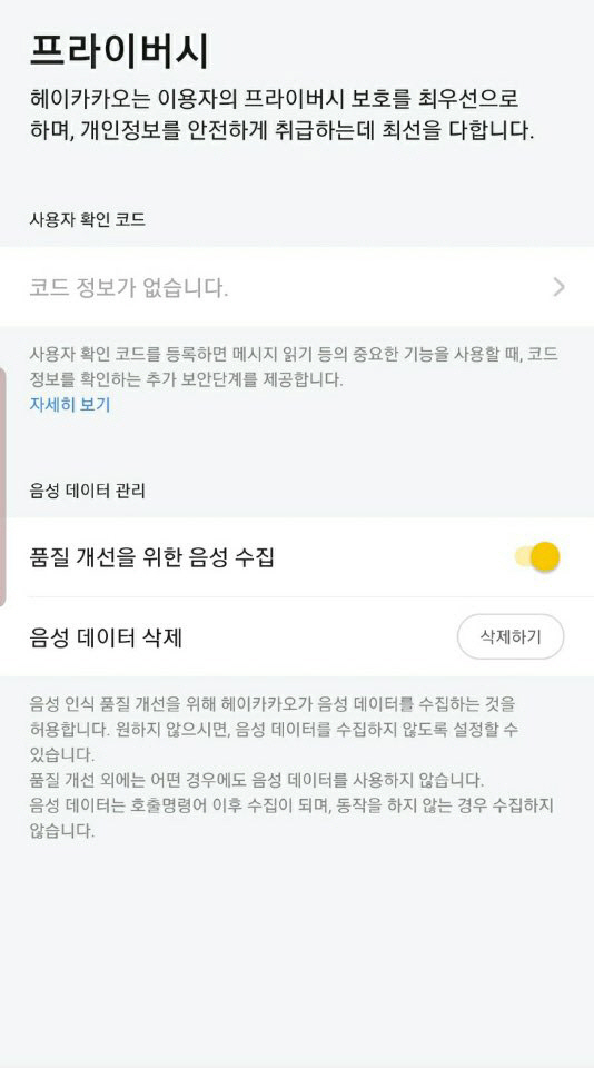 실제로 이번 국감에서 AI의 개인정보 침해 우려가 제기되자, 카카오는 카카오미니에 프라이버시 메뉴를 추가하고 ①음성 데이터 저장 여부를 이용자가 선택하는 기능과 ②이용자가 삭제 요청 시 지금까지 저장된 데이터를 모두 삭제하는 기능을 도입했다.