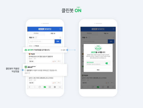 클린봇은 AI(인공지능) 기술을 이용해 불쾌한 욕설이 포함된 댓글을 자동으로 숨겨주는 기능이다. 올 4월 네이버스포츠와 쥬니어네이버, 네이버웹툰 등에 처음 적용됐다.