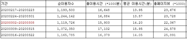 이용자 별 평균 이용시간도 ‘들쑥날쑥’했다. 2월17~23일까지 13.95분이었던 이용시간은 폐지 직전 주인 2월24일~3월1일엔 13.57분이었고, 연예 댓글을 폐지한 주인 3월2~8일까지는 14.20분으로 높아졌다.