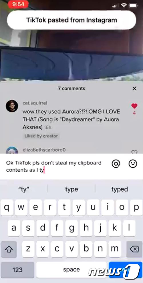 애플 iOS14의 개인정보보호 기능 업데이트와 중국 바이트댄스의 SNS ‘틱톡’으로 인해 애플리케이션(앱)들의 ‘클립보드 접근’에 대한 논란이 일고 있다. (트위터 jeremy burge 갈무리)© 뉴스1