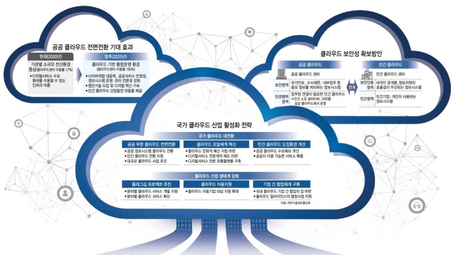 정부는 지난 7월 한국판 뉴딜 종합계획을 발표하며 행정·공공기관이 소규모 전산실에서 자체 운영 중인 정보시스템(정보자원 약 18만5000대)을 공공 또는 민간 클라우드센터로 2025년까지 단계적 이전·통합한다는 계획을 밝혔다.