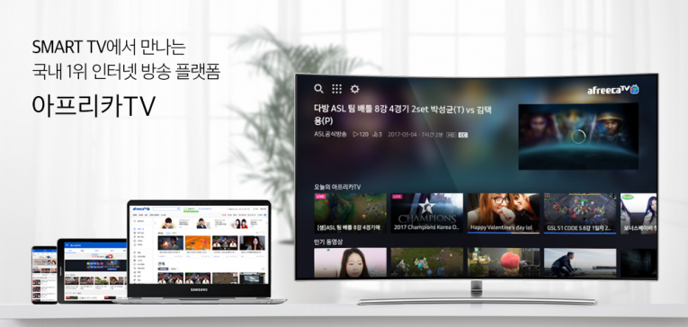 스마트TV용 아프리카TV 앱은 2017년 삼성 스마트TV 전 라인업은 물론, 2015년 이후 출시된 모든 삼성 스마트TV에서 이용할 수 있다. 국내 및 북미를 시작으로, 유럽 5개국, 아시아 7개국에 출시될 예정이다.