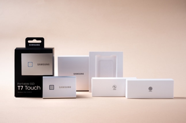 친환경 펄프로 만들어진 포터블 SSD T7 터치 포장재.(사진=삼성전자)지난해 2030년까지 탄소중립을 달성하겠다는 애플의 발표는 전 세계 반도체∙IT 시장에 큰 충격파를 일으켰다. 세계 각국과 단체들이 2050년으로 설정한 탄소중립 목표를 20년이나 앞당긴 데다, 자사뿐 아니라 협력업체의 탄소배출까지 관리하겠다고 밝혔기 때문이다.