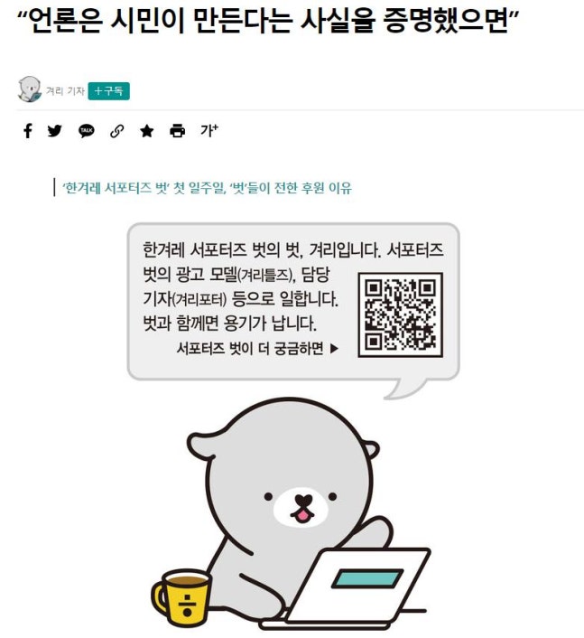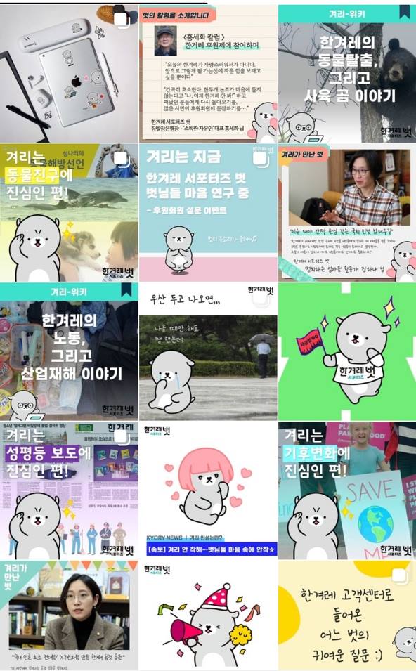 ‘겨리’는 인스타그램에서 귀여운 만화의 주인공이 되기도 하고, 후원 제도나 미디어 관련 기사를 작성하기도 한다. ‘서포터즈 벗’ 전용 뉴스레터를 쓰고 한겨레 기사를 큐레이션하기도 한다.