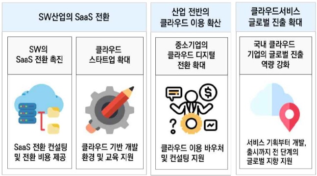 과기부는 “클라우드는 대용량의 데이터를 수집·저장·처리해 인공지능(AI) 기반으로 전 산업의 혁신을 촉진하는 핵심적인 인프라로서 중요성이 높아지고 있다”라며 “클라우드 기반의 디지털 대전환을 통해 국내 산업의 경쟁력을 확보하겠다”라고 했다.