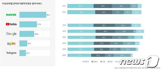 | PC·모바일 인터넷 이용자의 정보 검색 서비스(나스미디어 제공) © 뉴스1 |