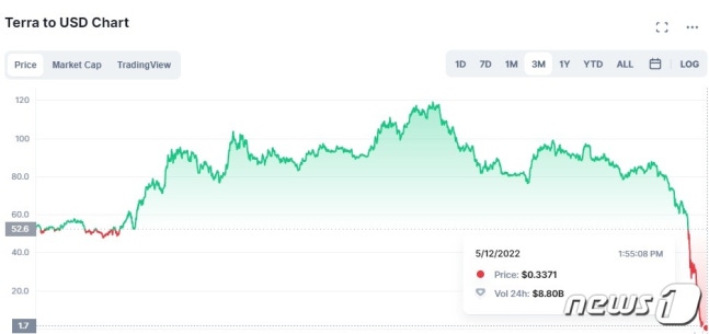 2022년 5월 12일 루나 코인의 가격 차트. © 뉴스1(코인마켓캡 제공)