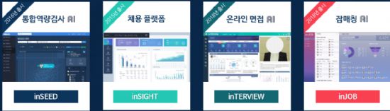 마이다스아이티의 AI 채용 솔루션은 채용 플랫폼이자 솔루션인 ‘인사이트(inSIGHT)’와 온라인 면접 솔루션 ‘인터뷰(inTERVIEW)’, 통합역량검사 솔루션 ‘인시드(inSEED)’, 잡매칭 플랫폼 ‘인잡(inJOB)’ 등 4 종류의 ‘인(in) 시리즈’로 구성됐다.