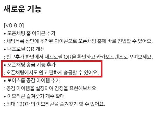카톡 오픈채팅 익명 프로필 상단 송금 기능 추가