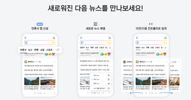 모바일 첫 화면 언론사 탭 구성 아웃링크 선택제 등 언론 상생 모델 구축 카카오의 다음 사내독립기업(CIC)이 모바일 다음뉴스 서비스를 개편했다. 이를 통해 모바일 첫 화면에 구독한 언론사의 편집판들을 한번에 보여주는 등 이용자가 보다 편리하게...