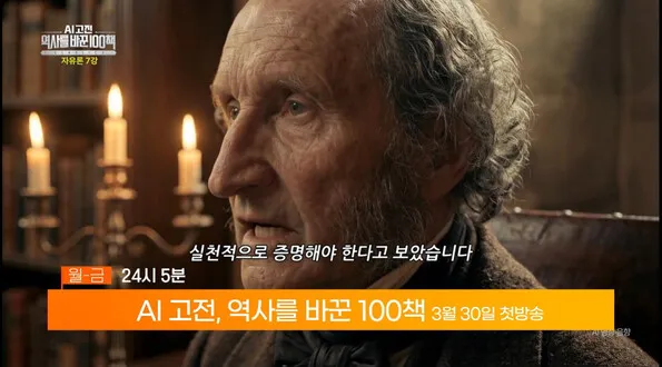 | EBS, 30일 ‘에이아이 고전: 역사를 바꾼 100책’ 방영 한국교육방송(EBS)이 30일 첫선을 보이는 인문교양 프로그램 ‘에이아이(AI) 고전, 역사를 바꾼 100책’의 화면 갈무리. EBS 제공 한 노인이 때 묻은 손으로 글을 쓴다. 그는...