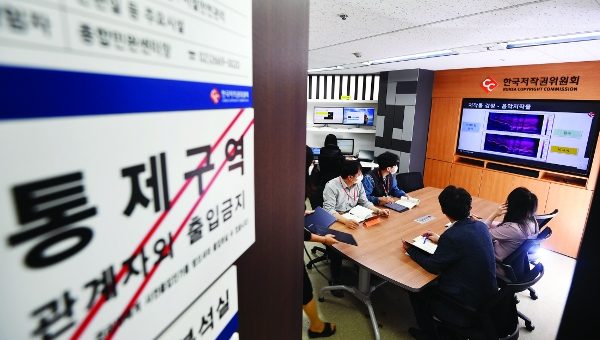 [논설위원의 이슈&톡] 저작권委 감정분석실을 가다 서울 용산구 한국저작권위원회 감정분석실에서 5일 감정 전문가들이 수사기관 등에서 의뢰받은 저작권 분쟁 사건에 대해 회의를 하고 있다. 지난 9월 23일 개관한 감정분석실에는 CCTV와 감정 전문 프로그램을 갖춘 컴퓨터 등이 설치돼...