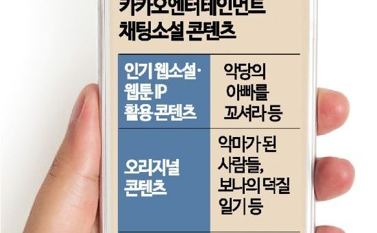 카카오페이지에 채팅소설 신설..콘텐츠 확보 나서 독자참여형 별도 서비스도 준비..MZ세대 정조준 카카오가 채팅소설을 차세대 킬러 콘텐츠로 키운다. 카카오페이지에 채팅소설을 새로 선보인 것에 이어 독자참여형 서비스를 별도로 내놓을 계획이다. 짧은 콘텐츠를 늘리고 이용자 참여를 유도해 ‘숏폼’...