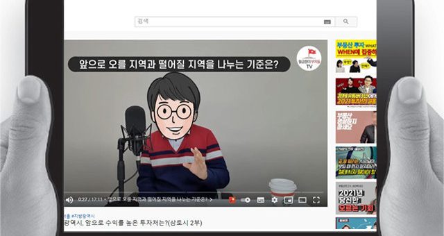 유튜브 메인 화면에 나타난 ‘부동산’ 관련 영상을 재생하자 화면 오른쪽에 알고리즘에 기반한 주식, 재테크, 부동산 관련 영상과 광고 영상이 자동적으로 등장한다. 영상 시청 기록은 유튜브 화면을 벗어난 뒤에도 영향을 끼쳐 연관 배너 광고로도...