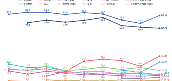 | 언론재단 ‘2025 언론수용자 조사’ 결과 | 영상뉴스 대세… 신문 열독률 역대 최저 장기간 하락세를 보이던 뉴스 이용률이 지난해 대통령 탄핵과 조기 대선 등 잇따른 정치적 이슈 영향으로 크게 반등했다. 다만 미디어별 희비는 엇갈렸다....