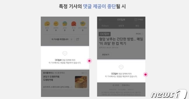 네이버뉴스, 댓글 언론사별 선택제 ‘개별 기사’ 단위로 확대 사건·사고 당사자 보호위해 언론사에 ‘댓글차단’ 권한 부여 언론사가 특정 기사의 댓글 제공을 중단했을 경우 나타나게 되는 네이버뉴스 예시 화면 (네이버뉴스 공지사항 갈무리) © 뉴스1 네이버뉴스가 지난해...