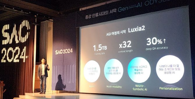 ‘솔트룩스 인공지능 컨퍼런스(SAC 2024)’가 거대언어모델(LLM) 루시아2부터 생활밀착형 서비스까지 공개했다. 솔트룩스는 30일 강남 GS타워에서 열린 ‘SAC 2024’에 다이퀘스트, 플루닛, 구버 등 그룹사 전체가 참여해 AI 기술과 서비스를 선보이고, 미래 청사진을 제시했다. 이날 솔트룩스는 국내 대기업...