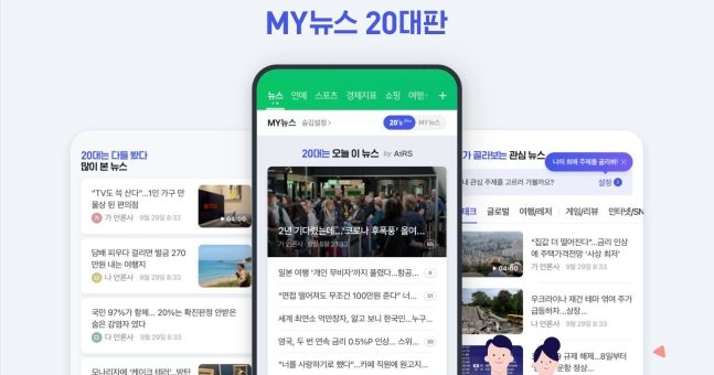 네이버 뉴스 ‘MY뉴스 20대판’ 출시 /네이버 제공 네이버가 20대 이용자를 겨냥한 뉴스 서비스 ‘마이(MY)뉴스 20대판’을 출시했다. 28일 정보통신기술(ICT) 업계에 따르면, 네이버는 27일부터 1994년 이후 출생자에게 기존 모바일 ‘마이뉴스판’ 대신 ‘마이뉴스 20대판’을 기본으로 노출하기 시작했다. 마이뉴스 20대판은 20대 이하 사용자들이 많이 읽은 기사를 주요...