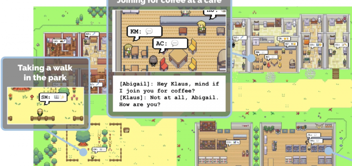 스탠포드·구글, AI 상호작용 시뮬라크르 연구 결과 AI 에이전트의 상호 작용을 게임처럼 시각화한 예. 실제 가상공간에서는 이런 식으로 AI가 움직이고 대화하지는 않는다. (사진=arXiv ‘Generative Agents: Interactive Simulacra of Human Behavior’) 인간이 없는 세상에 인공지능(AI)만 모아놓으면...