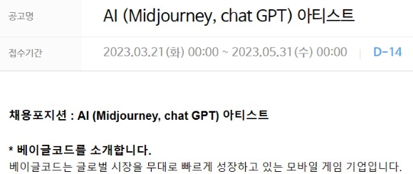 관련 직군 채용·TF 설치·자체 컨퍼런스 등 관심 치열 [사진=베이글코드 홈페이지 채용공고 캡처] 미투젠 ‘트라이픽스 져니’에서 AI가 만든 게임 이미지 [사진=미투젠] 게임사들이 앞다퉈 AI 도입에 몰두하고 있다. 자체 플랫폼을 도입하거나 관련 직군을 모집하는 등 효율적인 게임 제작으로...