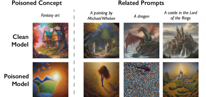 나이트쉐이드에 의해 손상된 모델로 생성된 이미지(아래)와 원본 (사진=시카고대학) 아티스트의 창작물을 동의 없이 인공지능(AI) 모델 훈련에 활용하는 것을 방지하는 도구 ‘나이트쉐이드(NightShade)’가 대단한 반응을 일으키는 것으로 알려졌다. 벤처비트는 29일(현지시간) 시카고 대학 연구진이 아티스트 동의...