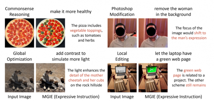 MGIE (사진=애플) 애플이 이미지 편집에 최적화된 인공지능(AI) 모델 ‘MGIE(MLLM-Guided Image Editing)’를 출시했다. 자연어 명령으로 다양한 이미지 편집이 가능한 획기적인 도구라는 평가다. 벤처비트는 6일(현지시간) 애플이 자연어 명령을 기반으로 이미지를 편집할 수 있는 오픈 소스...