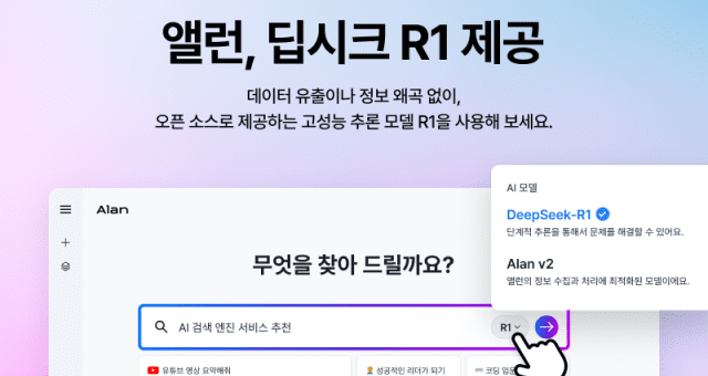 딥시크 R1, 국내 AI 검색 서비스 중 가장 먼저 적용 오픈소스와 독립된 클라우드 활용 정보 유출 막아 AI 서비스 전문 기업 이스트소프프는 AI 검색 엔진 서비스 앨런에 딥시크 추론 특화 모델 R1을 적용했다고 10일...