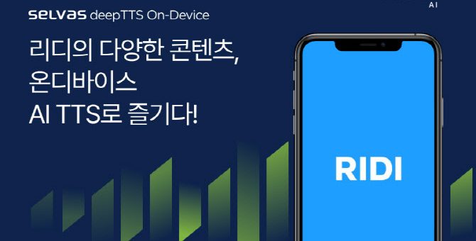 인공지능 및 음성기술 대표기업 셀바스AI(108860)는 AI 음성합성 솔루션 ‘SELVAS deepTTS On-Device’을 리디(RIDI)에 적용했다고 27일 밝혔다. 리디(RIDI)에 탑재된 AI 딥러닝(DNN) 기반 음성합성 솔루션 SELVAS deepTTS On-Device는 인터넷 연결 없이 호흡, 억양, 감성 등 다양한 음성...