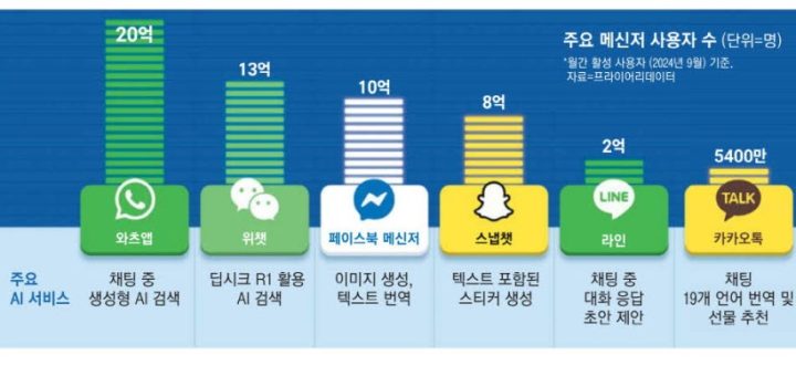 에이전트로 진화한 메신저 생성형 AI 접목, 기능 고도화 이미지 생성·식당 추천 기능 말투 바꿔주고 채팅 응답 제안 글로벌 메신저들이 생성형 인공지능(AI)을 본격 도입하며 변신에 나서고 있다. 검색, 이미지 생성, 음성 대화 등 고도화된 기능들이 속속 접목되면서 AI 에이전트로...
