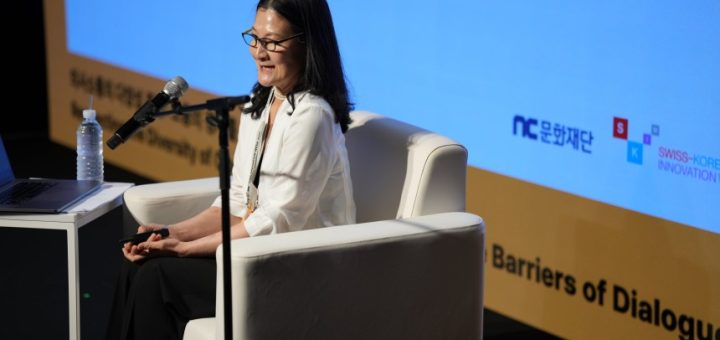 NC문화재단-주한스위스대사관 다이얼로그 뇌성마비 극복, 정유선 조지메이슨대 교수 강연 뇌·컴퓨터 연결, 증강현실로 말 없이 의사소통 게임으로 언어장애 치료…사생활 침해 우려도 정유선 미국 조지메이슨대 교수가 21일 열린 NC문화재단-주한스위스대사관 다이얼로그에서 발표하고 있다./주한스위스대사관 “말을 하지 않으면, 우리는 소통하지...