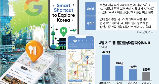 네이버, 구글맵 공세 대응 AI 리뷰요약 CBT●도입 검토중 탐색 편의성 높아 활용도 큰기대 구글 안방침투 앞두고 경쟁력 강화 카카오도 올 ‘AI메이트로컬’ 출시 네이버가 수천개의 장소 리뷰를 인공지능(AI)으로 요약·제공하는 기능을 자사 로컬 서비스에 접목하는 방안을 검토 중이다. 구글이...