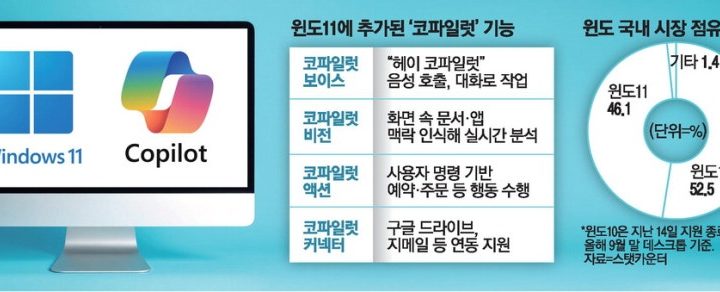MS, 코파일럿 기능 개선 발표 음성으로 AI 호출 및 지시 화면도 읽어 실시간 분석 보고 듣고 행동하는 OS로 윈도11 순차적 업데이트 윈도11 퍼스널컴퓨터(PC)를 쓰는 모든 이용자가 앞으로 음성과 비전 기능이 통합된 인공지능(AI) PC로 활용할 수 있게 된다. 이용자는 운영체제(OS)에...