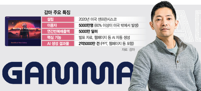 ■ 그랜트 리 감마 CEO 재작년 출시 AI슬라이드 제작툴 전체인력 40명 소규모 스타트업 국내서도 사용자 200만명 달해 ‘올인원’ 목표···맞춤 현지화 주력 [서울경제] 마이크로소프트(MS)의 파워포인트(PPT)가 1987년 출시된 이후 40년 가까이 발표 도구의 표준으로 자리 잡았지만 발표...