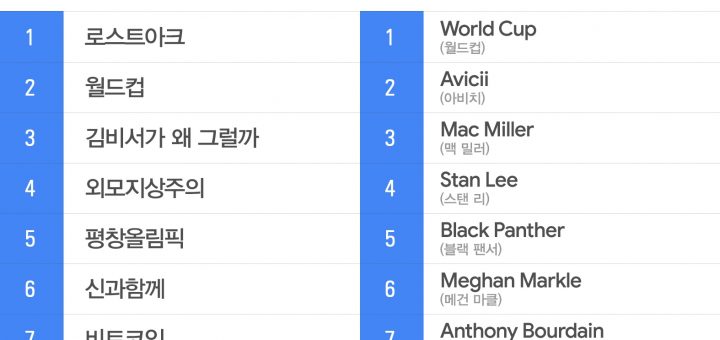 어느덧 2018년을 마무리하는 마지막 달로 접어들었습니다. 여러분은 2018년을 어떤 해로 기억하시나요? 구글은 오늘 구글 검색으로 본 2018년 한국과 글로벌 인기 검색어 순위를 발표했습니다. 종합 카테고리를 비롯하여 인물, 뉴스, TV 프로그램, 영화 등 분야별 상위...