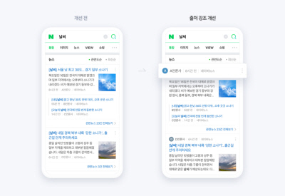 23일부터 네이버 모바일 뉴스 검색에서 언론사 이름이 기사제목 상단에 노출된다. 네이버 제공 네이버 모바일 뉴스 검색 화면에서 기사 제목보다 언론사 이름이 강조된다. 네이버는 오는 23일부터 모바일 뉴스 검색화면을 이 같은 내용으로 개편한다고 20일...