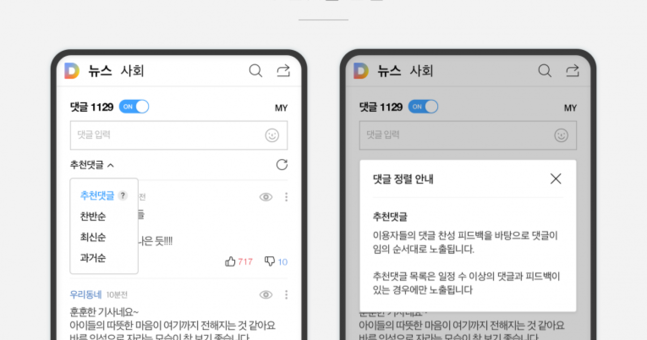 카카오가 상위 댓글을 임의로 보여주는 ‘추천댓글’ 정렬을 도입한다. 지난 2월 댓글 이용자의 권리와 악성 댓글 제재를 강화한 데 이어, 이번에는 댓글의 다양성을 높이기 위한 개편 작업이다. 30일 카카오는 포털 다음(Daum)과 카카오톡 #탭의 뉴스 댓글 서비스에서...