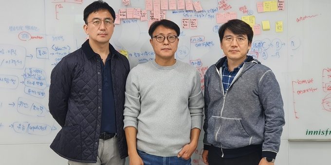 [미디어 뉴 웨이브] ‘한국판 서브스택’ 넘어 쇼피파이 모델 삼는 ‘미디어스피어’ 미디어스피어 임원진이 서울 중구 명동 인근에 위치한 사무실에서 포즈를 취하고 있다. (왼쪽부터) 강정수 CSO(전 청와대 디지털소통센터장), 이성규 CEO(전 메디아티 미디어테크랩장), 김경달 COO(네오캡 대표)의...